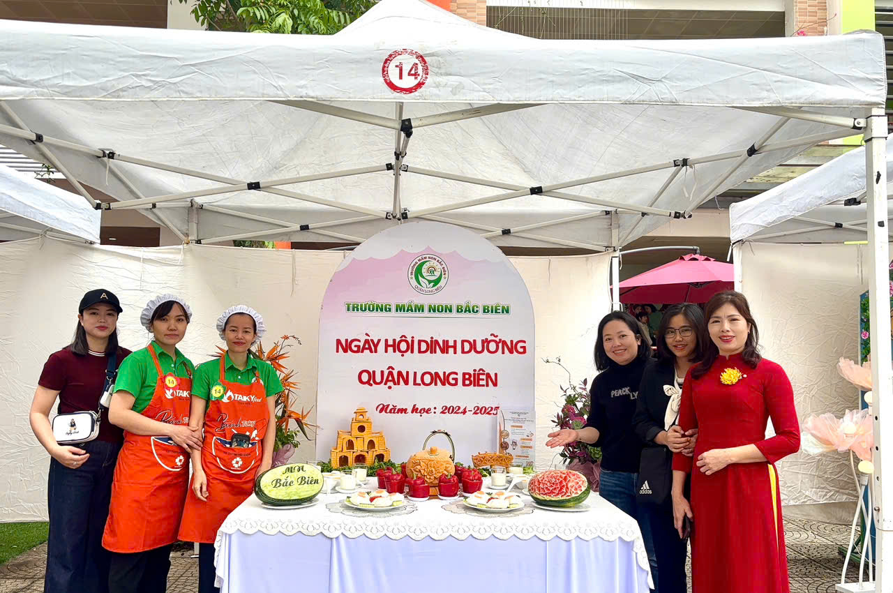Sáng ngày 29/03/2025, Trường MN BẮC BIÊN đã tham dự “Ngày hội dinh dưỡng” cấp học mầm non năm học 2024-2025. Đây là hoạt động nằm trong kế hoạch thực hiện nhiệm vụ năm học của ngành GDĐT quận Long Biên, nhằm củng cố, nâng cao kiến thức về dinh dưỡng – sức khỏe, vệ sinh an toàn thực phẩm, kỹ thuật chế biến món ăn cho trẻ đảm bảo quy trình cho đội ngũ nhân viên nuôi dưỡng trong các